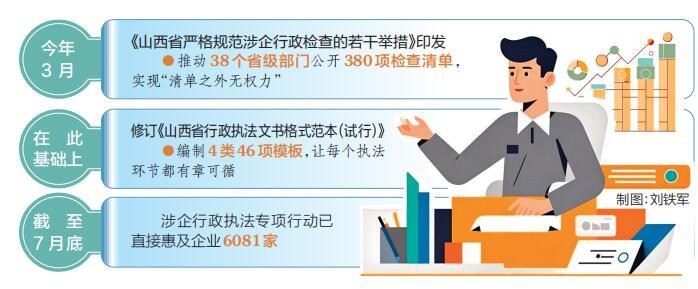 建立執(zhí)法清單,規(guī)范執(zhí)法行為。今年3月,省政府辦公廳印發(fā)《山西省嚴(yán)格規(guī)范涉企行政檢查的若干舉措》,推動38個(gè)省級部門公開380項(xiàng)檢查清單,實(shí)現(xiàn)“清單之外無權(quán)力”。同時(shí),省司法廳推動各級行政執(zhí)法部門制定并公布年度行政檢查工作計(jì)劃,合理確定本單位對同一企業(yè)實(shí)施行政檢查的年度頻次上限,以及行政執(zhí)法部門的職責(zé)邊界。目前,已有21個(gè)省級行政檢查主體公布了行政檢查年度頻次上限,全省上半年涉企檢查總量同比下降36%。在此基礎(chǔ)上,修訂《山西省行政執(zhí)法文書格式范本(試行)》,編制4類46項(xiàng)模板,讓每個(gè)執(zhí)法環(huán)節(jié)都有章可循,進(jìn)一步規(guī)范執(zhí)法行為。
